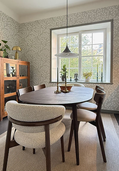 "Jag har tidigare tagit hjälp av Annika för att inreda mitt vardagsrum. Nu var det dags för köket. Jag fick lika lyhörda och inspirerande tips som förra gången. Hon utgick från mina behov och önskemål, adderade sin egen stilsäkra twist. Jag vågade bland annat gå på de föreslagna blommiga tapeterna och grönmålade fönsterkarmar och lister. Det blev så fint och jag är mer än nöjd. Nu är fönstret som en inramad tavla mot grönskan på innergården. Dessutom blev det mer funktionellt eftersom jag nu kan sitta bekvämt när jag arbetar hemifrån och får möjlighet att visa upp mitt handgjorda porslin i det fina vintageskåpet. Stort tack! Jag kan varmt rekommendera Annika på Fab Homes."
